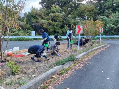 沿道のゴミ拾いとチューリップの球根200個近くを植え込みました。イノシシに食べられることなく、春に向けて、きれいな花を咲かせることを願うばかりです。