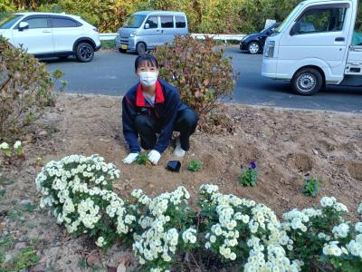 商工会女性部三瓶支部の方と宇和三瓶線沿いの清掃活動と花壇の花植えに三瓶分校の生徒会長が参加してきました。